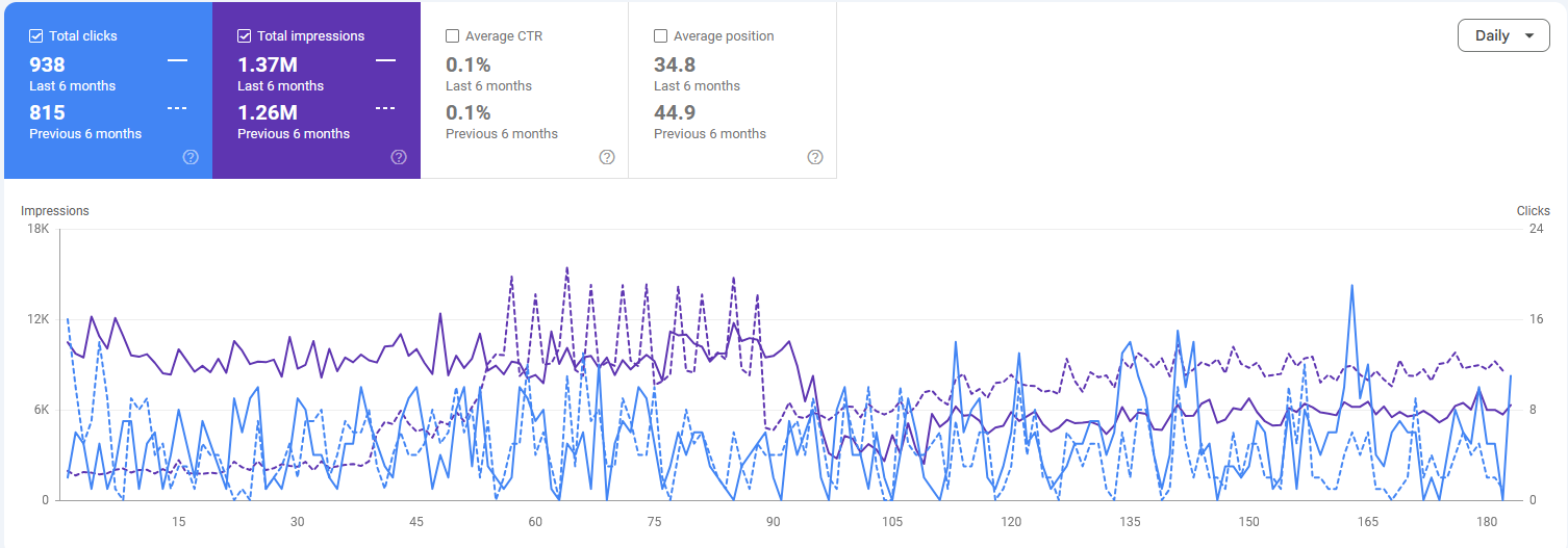 - Around 15% lift in pure organic traffic in Google Search Console over six months